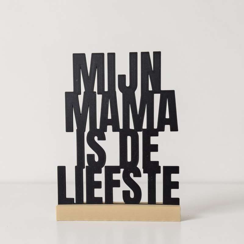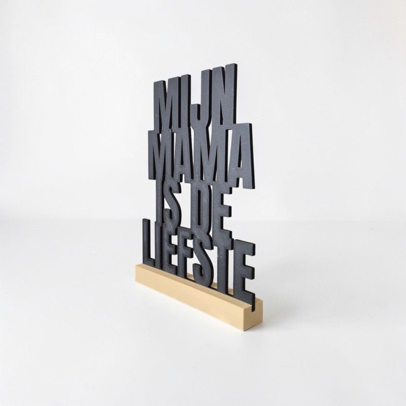 De quote "Mijn mama is de liefste" is een minimalistische 3D geprinte decoratie voor je interieur.