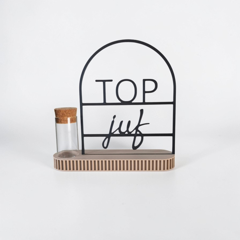 Deze houder van 170 mm is voorzien van ruimte voor een geïntegreerd vaasje (Ø 30 mm), waardoor quotes gecombineerd kunnen worden met bijvoorbeeld droogbloemen, zaadjes, snoepjes, ...