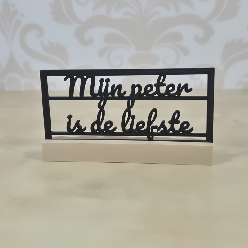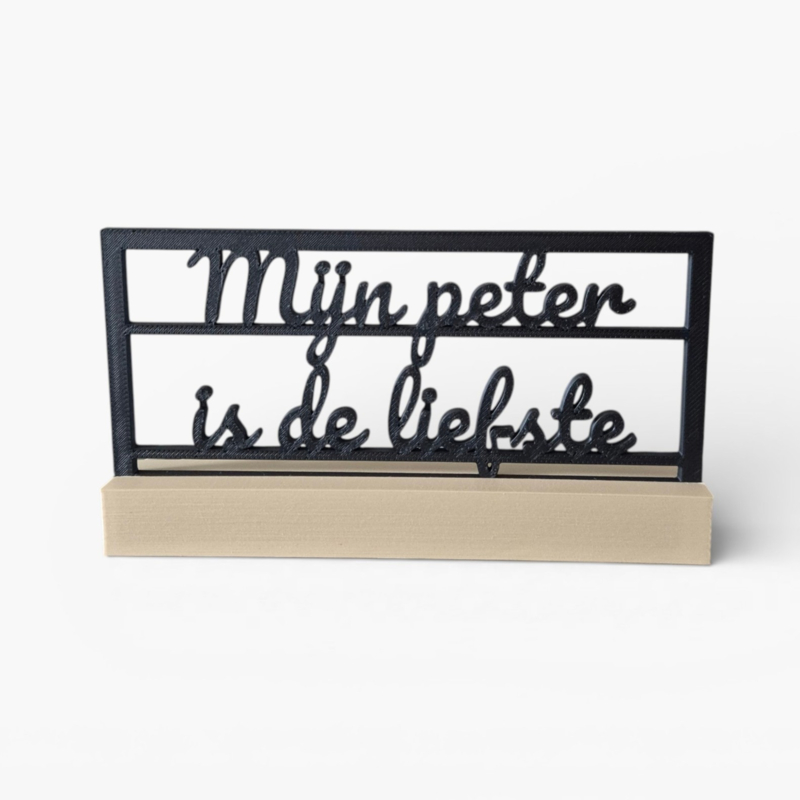 De quote "Mijn peter is de liefste" is een minimalistische 3D geprinte decoratie voor je interieur.