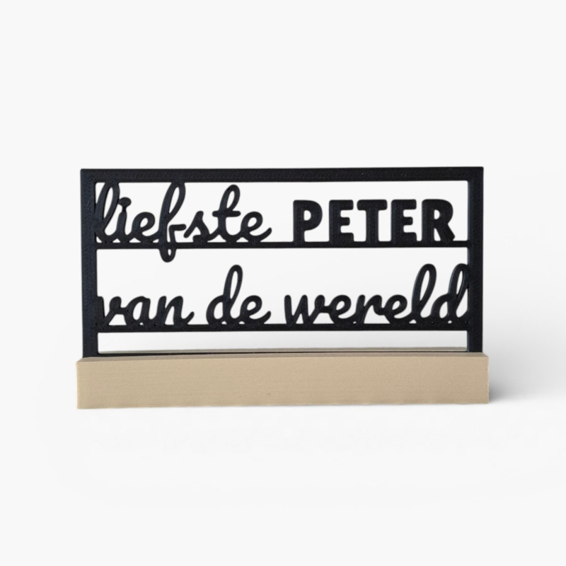 "Liefste peter van de wereld" – 3D geprinte quote – minimalistische decoratie