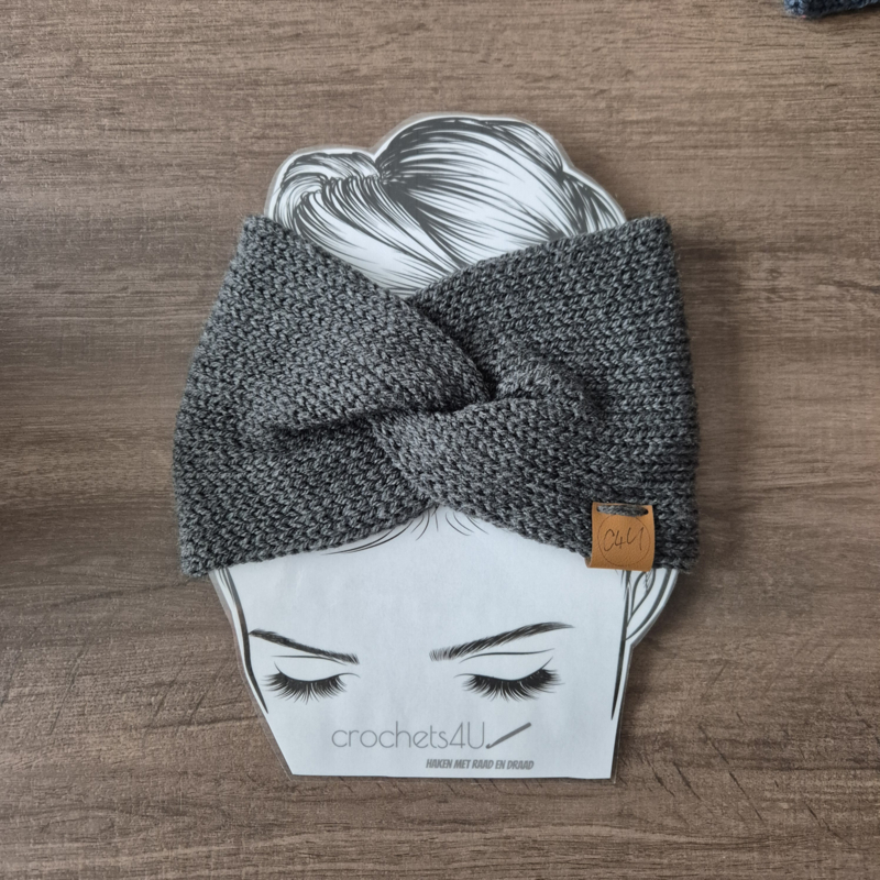 Gebreide hoofdband donkergrijs – dubbel gebreid, warme winter hoofdband van acryl