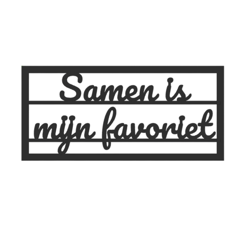 De quote "Samen is mijn favoriet" is een minimalistische 3D geprinte decoratie voor je interieur.